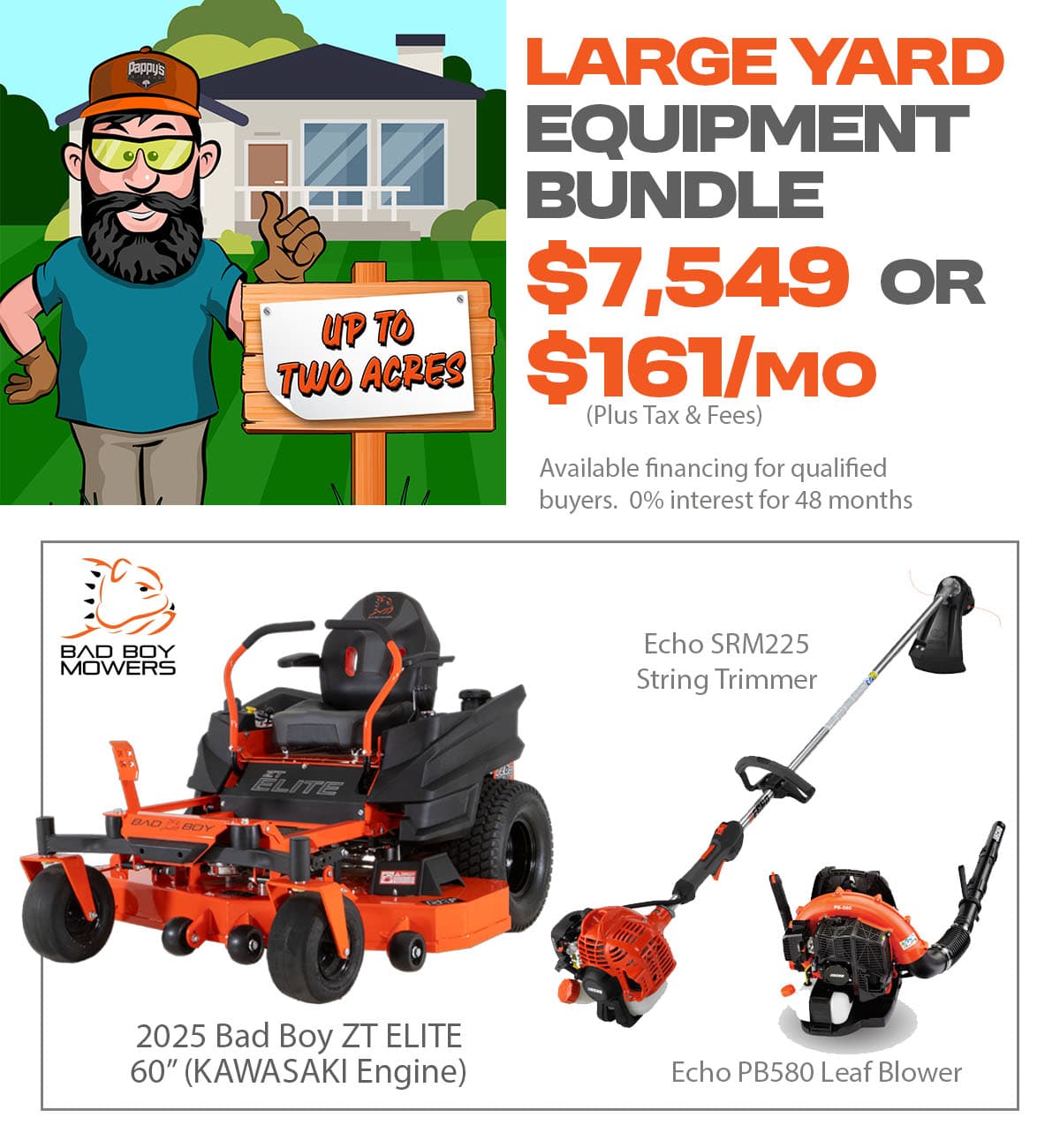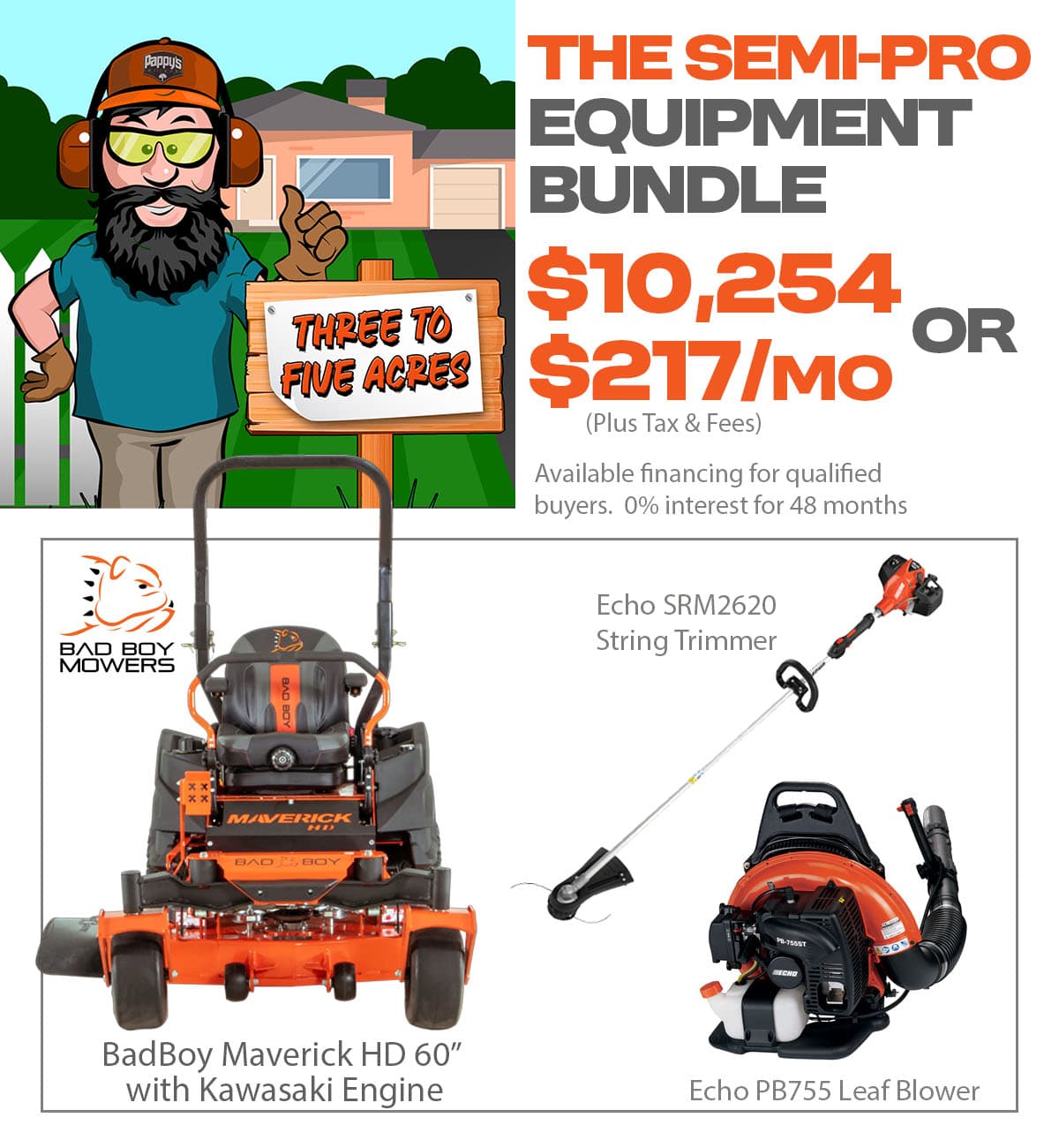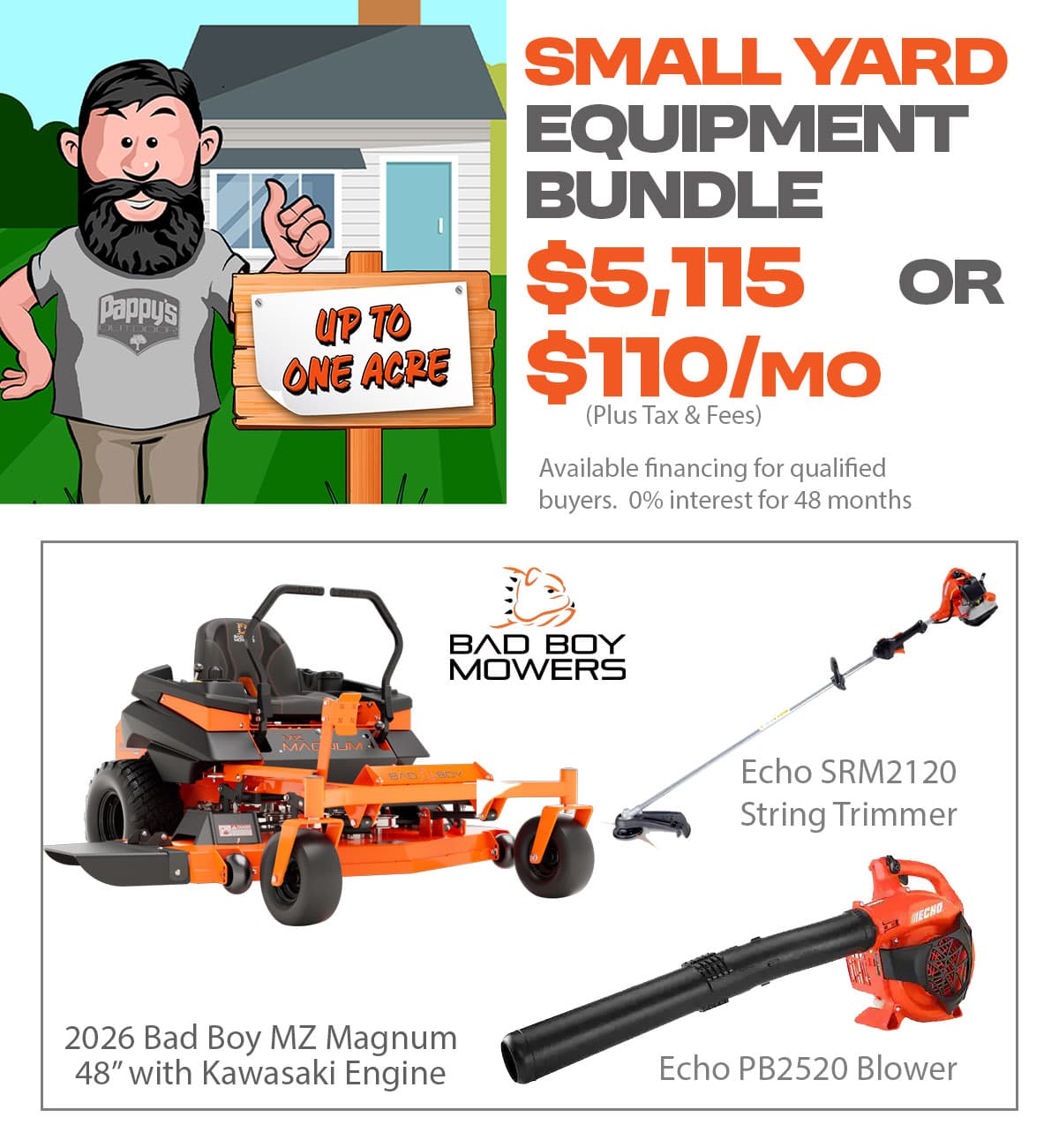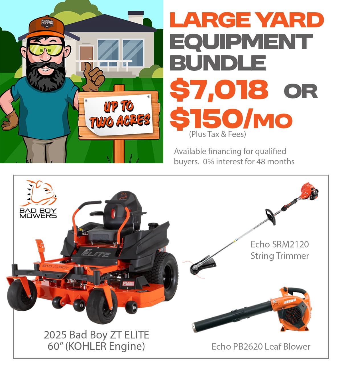 At Pappy's, we know that no two jobs are the same. That's why we used very 'Scientific-ish' methods to create packages sized to fit your needs. Whether you maintain your own yard or run a commercial lawncare business, take advantage of our bundled pricing! Don't see a bundle that you like? Create your own!